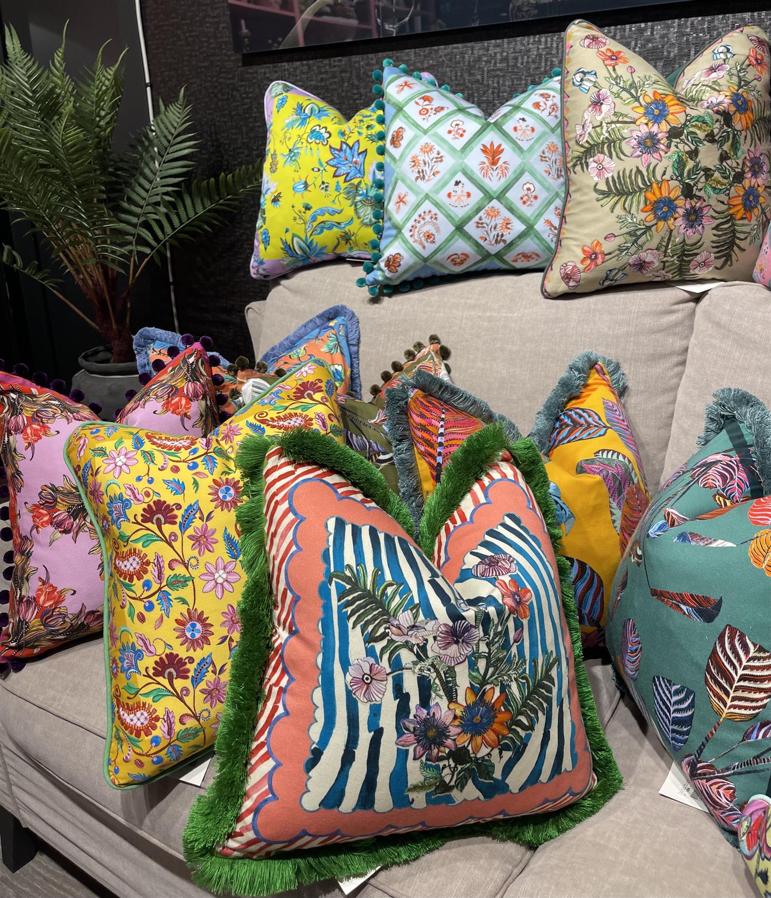 Designet er håndtegnet og digitaltrykt i Storbritannia, og puten er ferdigstilt med en elegant kant.