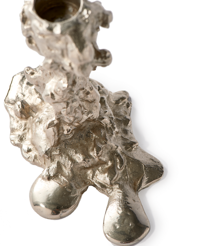 Drip lysestaken av Pascal Smelik for Polspotten er unik i design. Designeren er fasinert av konseptet med misdannelse og lysestaken er inspirert av denne fasinasjonen.