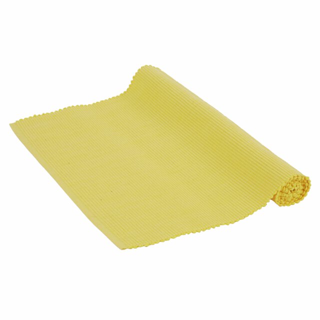 Praktisk og enkel løper i 100 % bomull på 34 x 100 cm. Den friske gule fargen bidrar til å løfte borddekkingen. Løperen kan brukes på spisebordet, salongbordet eller kommoden.