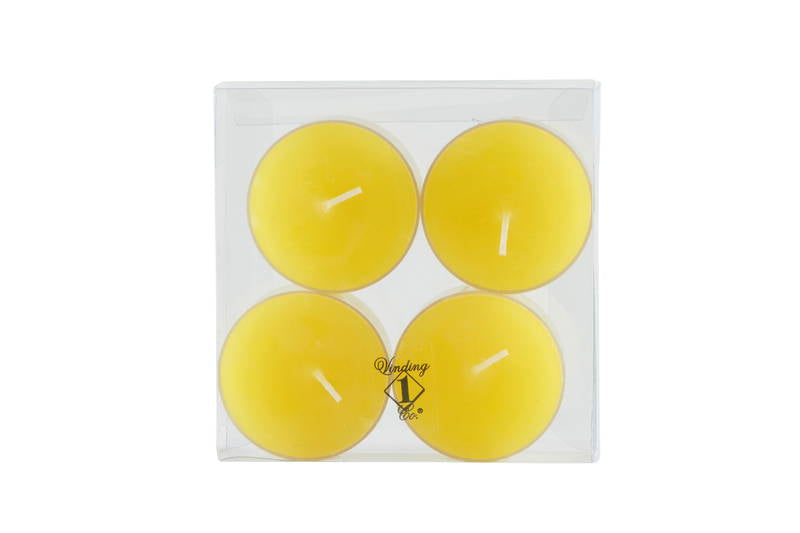 Flotte store telys i gjennomsiktig kopp fra Vinding. Telysene er Ø6x2 cm og det er 4 telys i pakken. Brennetid er ca 6 timer.