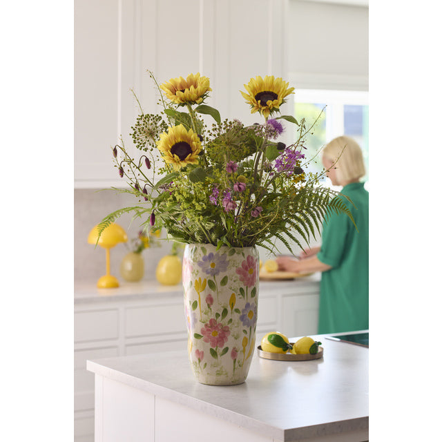Klassisk vase som skaper en følelse av Middelhavets herlige sommer. Vasen er av keramikk og designet med vakre blomster og blad.