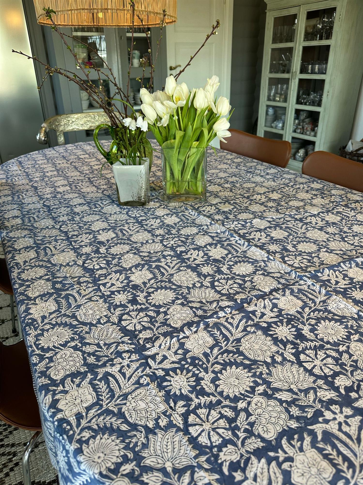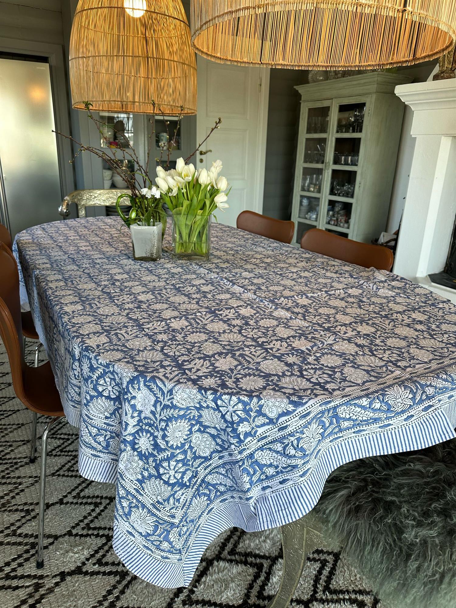 Duken fra Anouska er avlang med det vakreste blokktrykte mønster i delikat blåfarge.