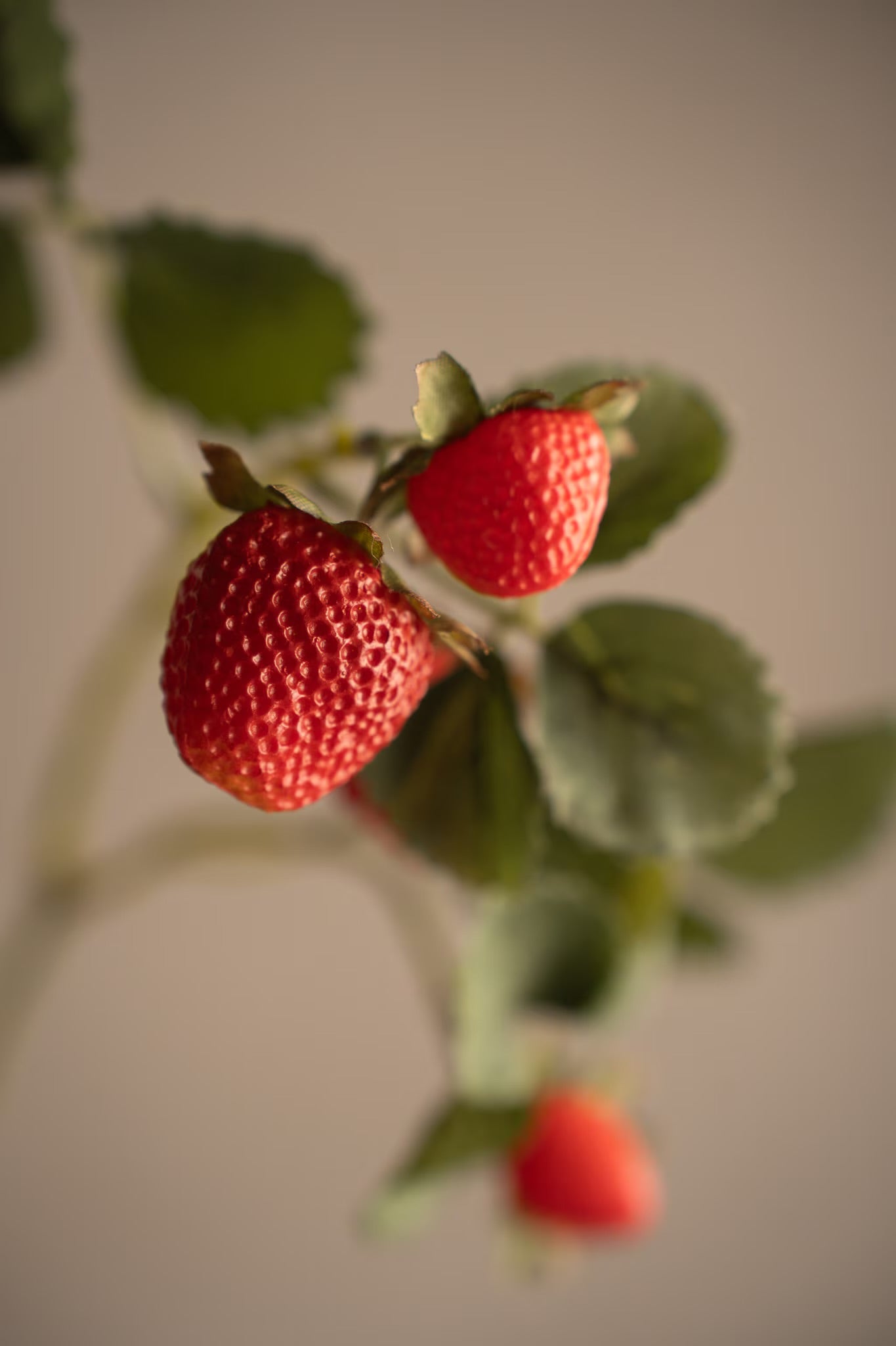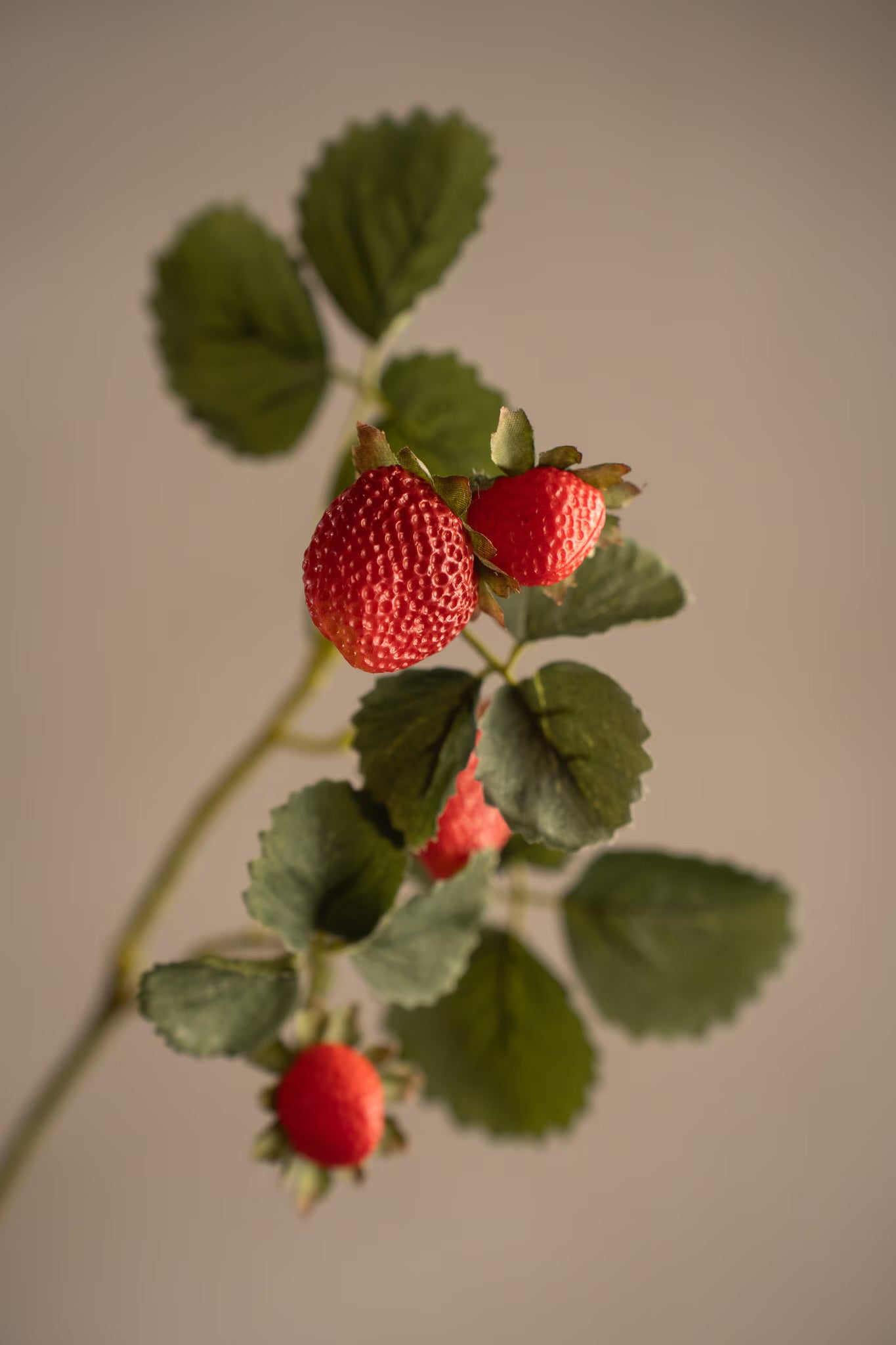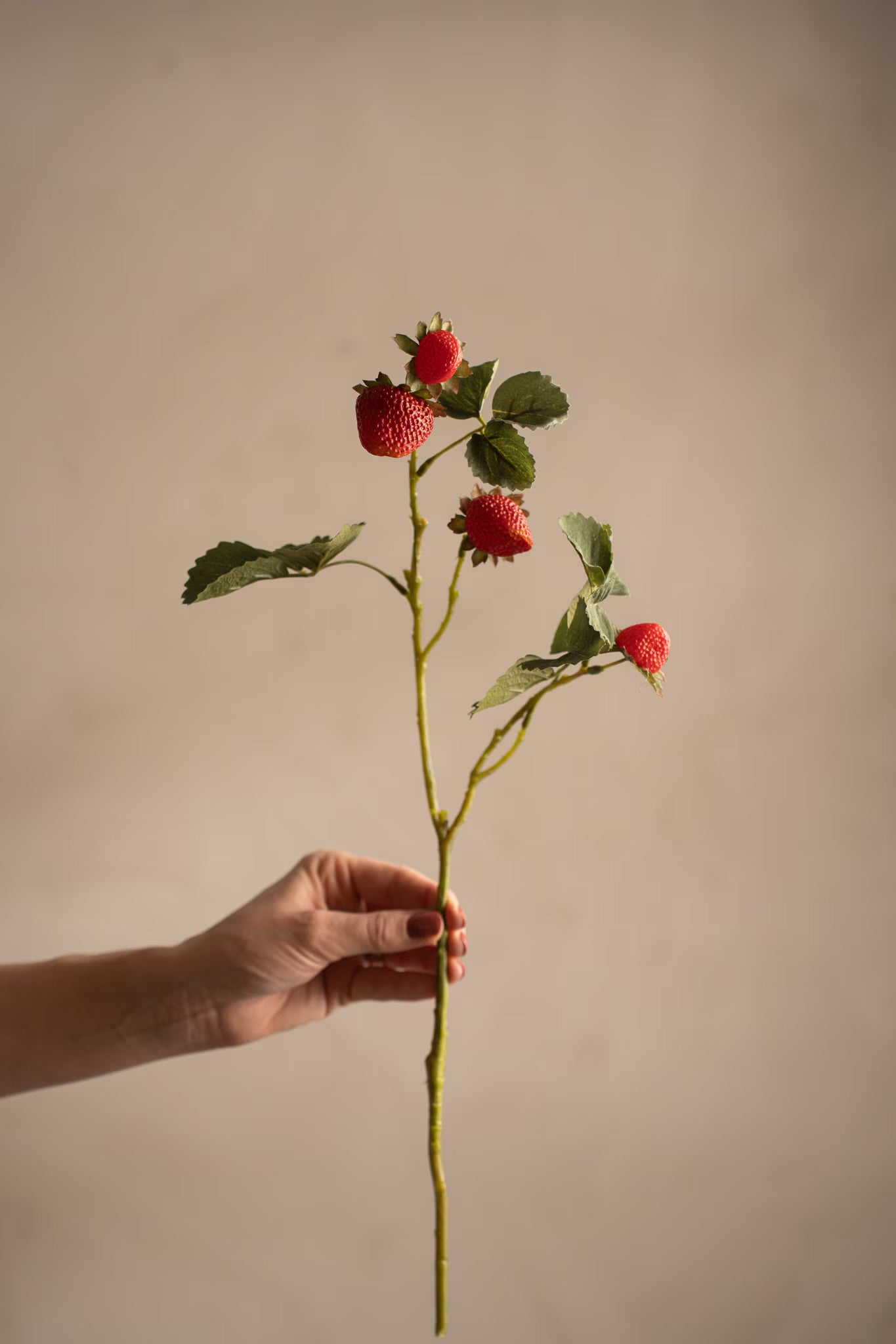 Denne vakre jordbærkvisten med detaljerte bær og blader er et sommerlig og livlig element! Denne kunstige kvisten på 50 cm er perfekt for å gi hjemmet ditt et preg av naturen. Plasser den i en vase eller bruk den som en del av et større arrangement.