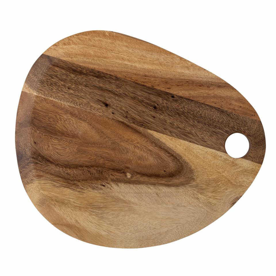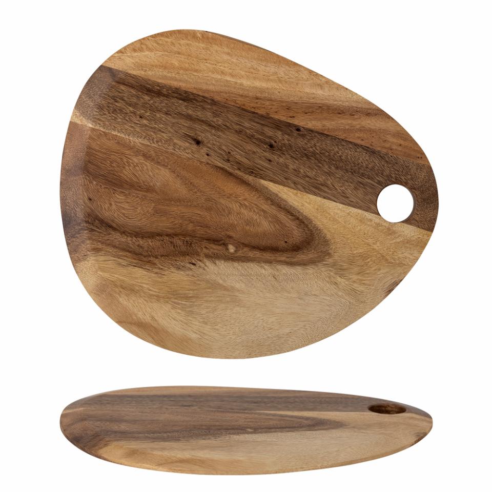 Guti skjærefjøl fra Bloomingville er laget av suar-tre og har en vakker, organisk silhuett. Den er perfekt som oste- eller tapasbrett, samt til pålegg og frukt. En praktisk løkke gjør det enkelt å henge brettet på veggen, slik at det alltid er innen rekkevidde og kan fungere som dekor på kjøkkenet. Den naturlige variasjonen i treets årringer gjør hver skjærefjøl unik.