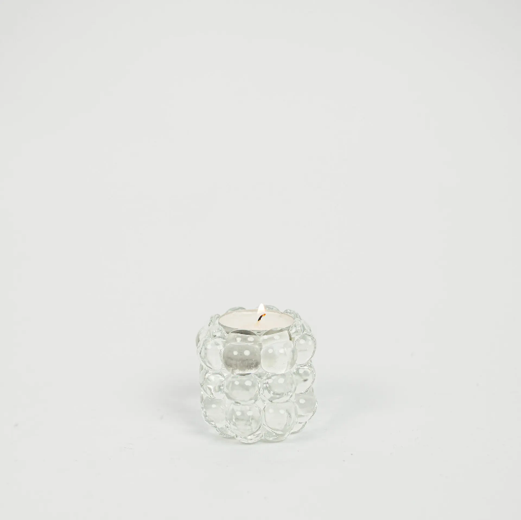 Lysestake Unni fra Olsson & Jensen er i glass. Den kan brukes begge veier, så den kan brukes til telys og kronelys.