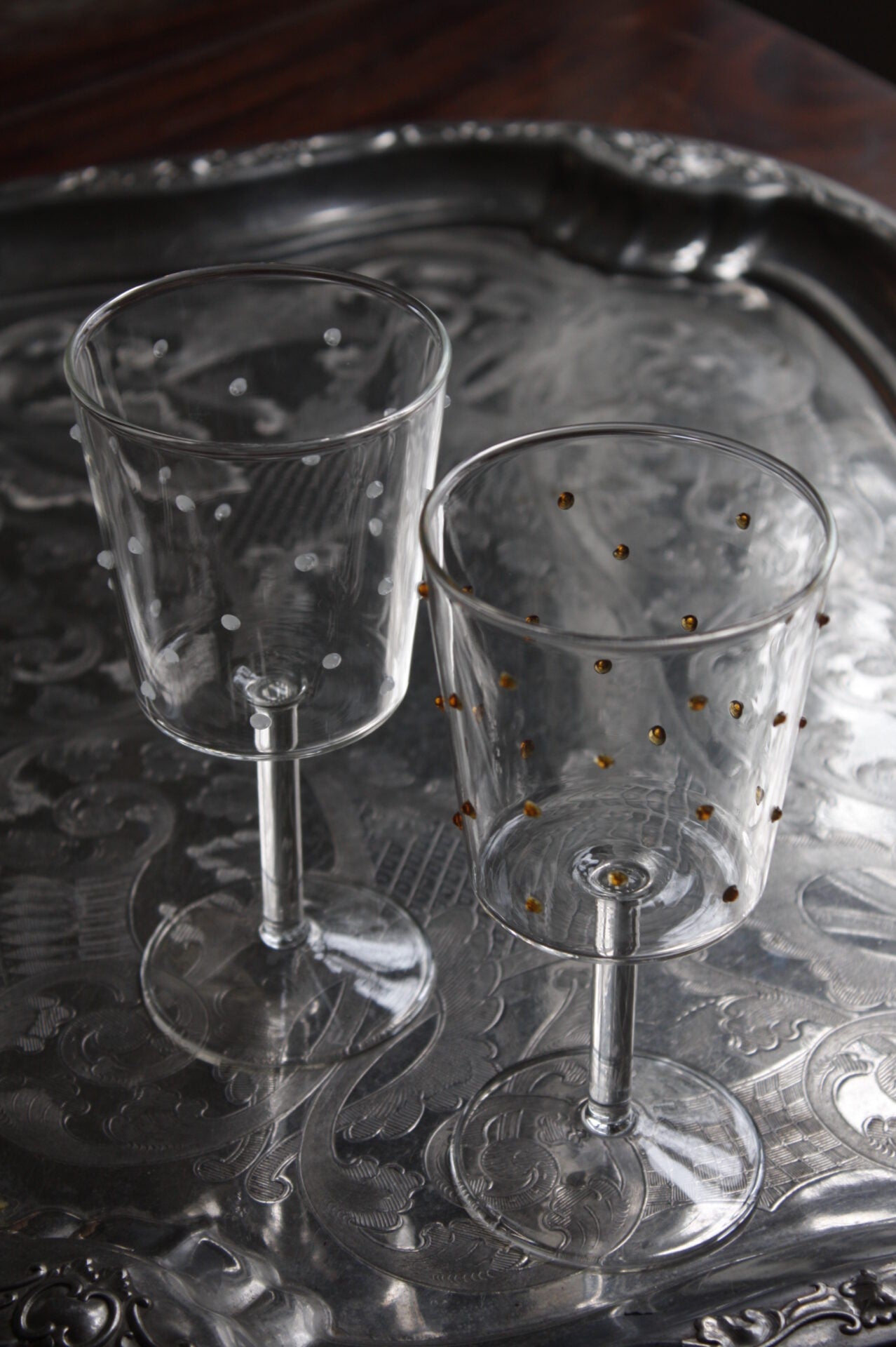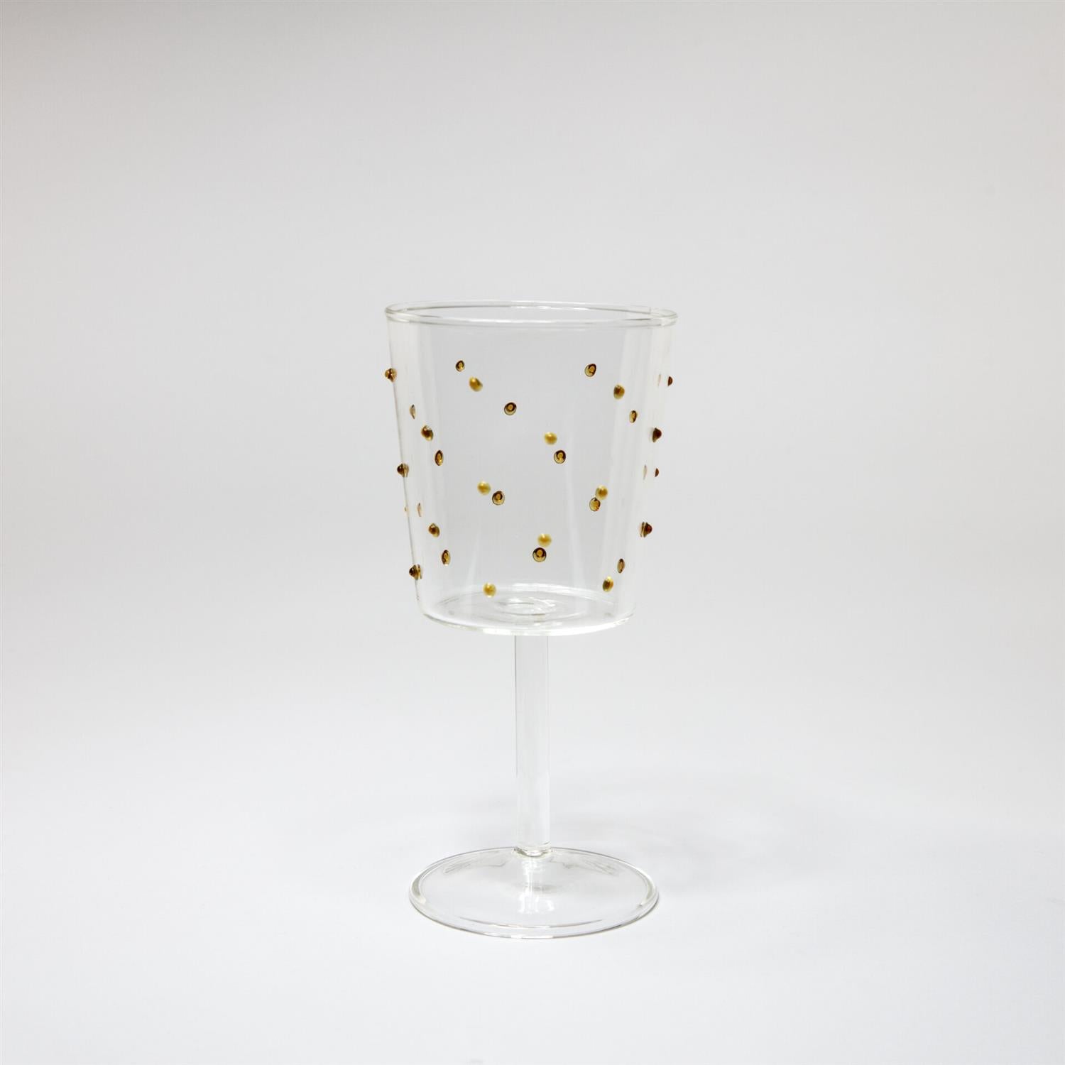 Lekkert og festlig vinglass Venezia fra Olsson & Jensen med bærnesteinsprikker som gir et morsomt preg på glasset. Glasset tåler oppvaskmaskin.