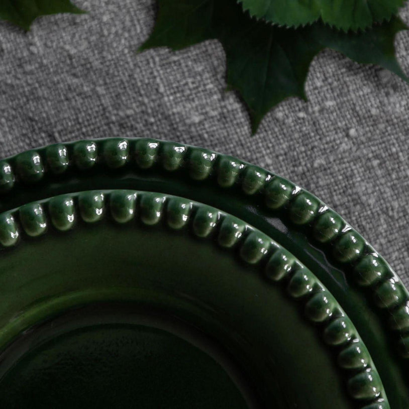 Lekker serveringsskål Daria Moss fra PotteryJo som er håndlaget i Portugal av ovnsikkert steintøy. Skålen er i lekker grønn farge med vakker mønsterkant.