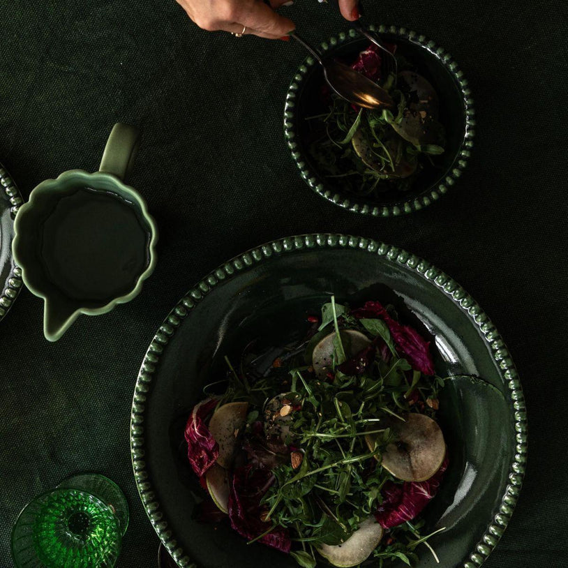 Lekker tallerken Daria Moss fra PotteryJo er håndlaget i Portugal av ovnsikkert steintøy. Tallerken er i lekker grønn farge med vakker mønsterkant.