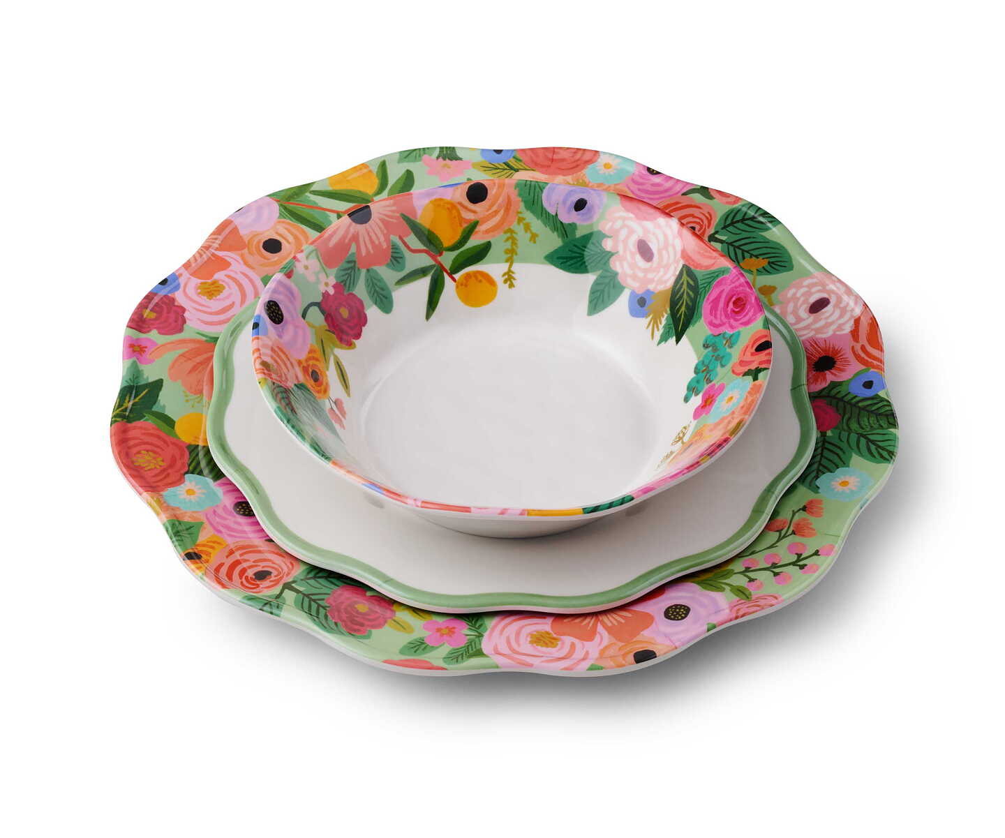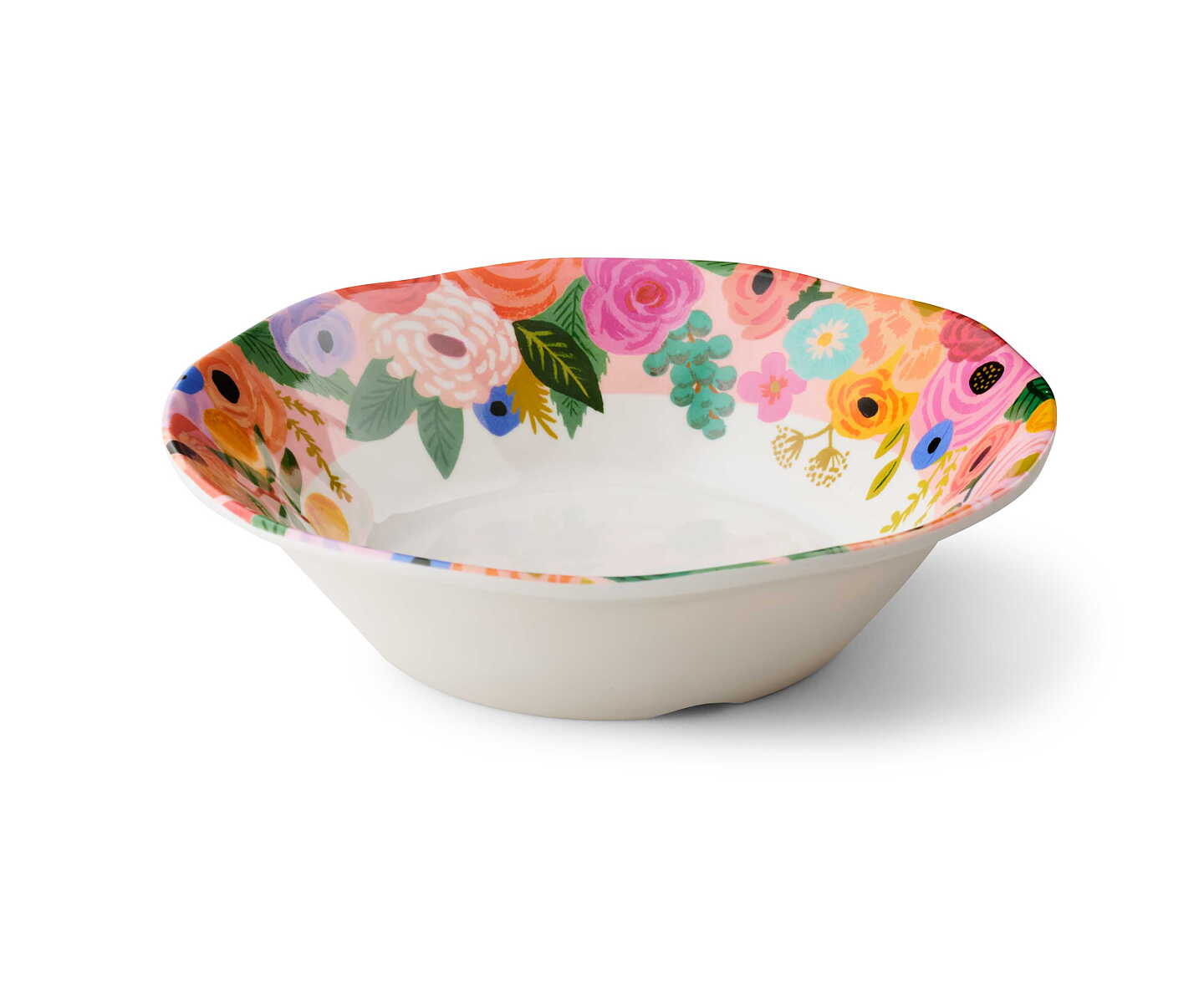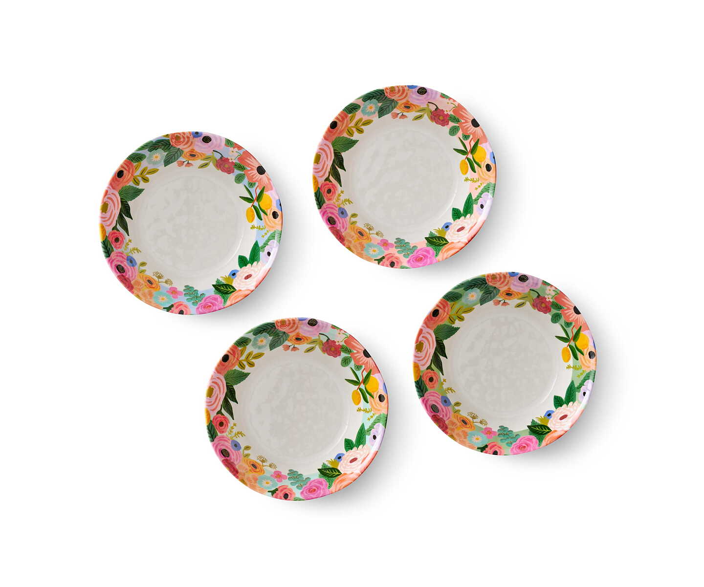 Delikate skåler i Garden Party fra Rifle Paper som selges i sett med 4 skåler med en ulike farger under mønsteret.
