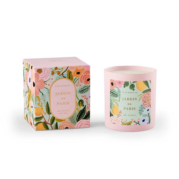 Det skjønne duftlyset Jardin de Paris fra Rifle Papers har duft av peon, hvit te, gardenia og sandeltre. Duftene er utviklet spesielt for Rifle Paper Co og kommer i fantastisk vakker gaveeske med gulldetaljer.