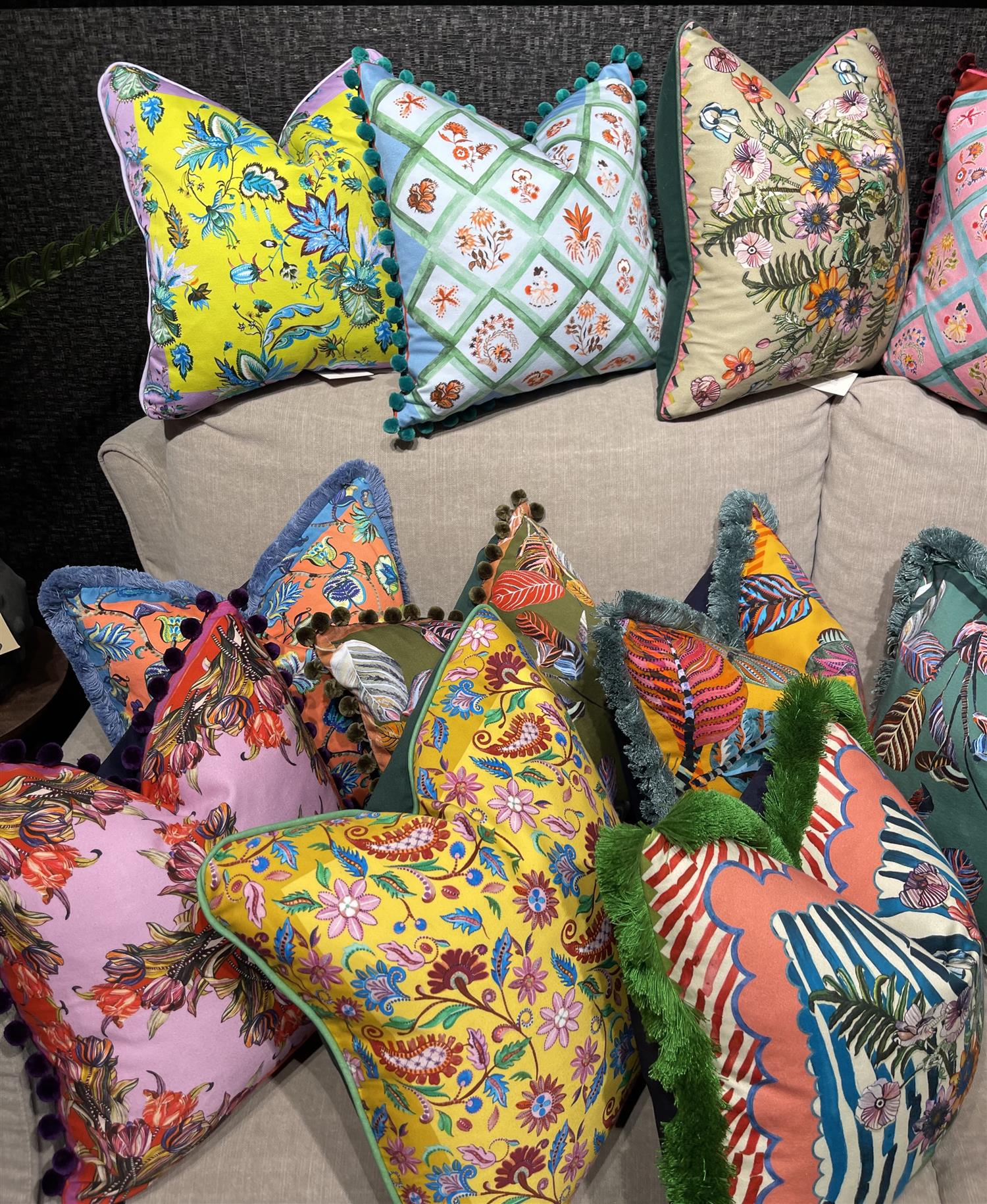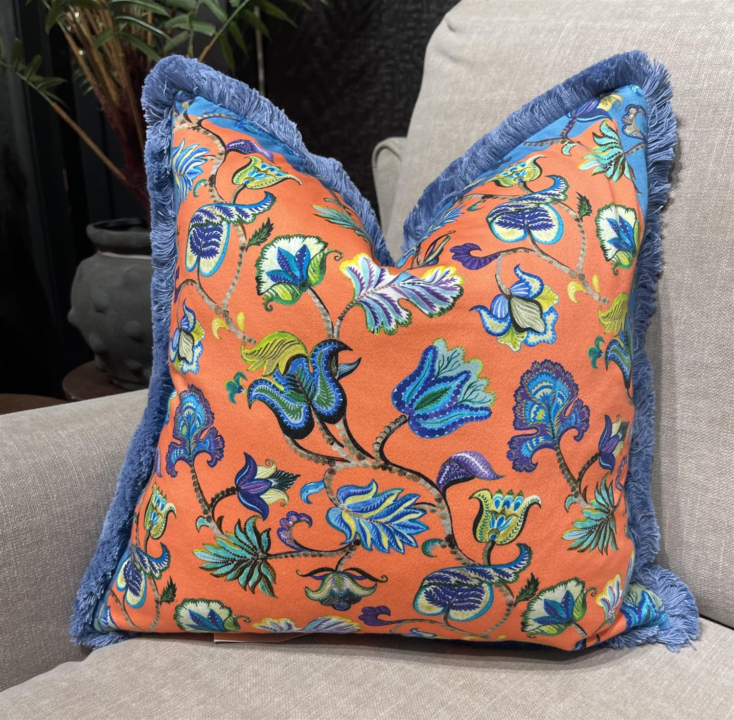Gi putesamlingen din et løft med den fantastiske puten Chloe nude fra Eleni Malami! En leken kombinasjon av sterke farger og vakre botaniske mønstre gir et friskt og gledelig uttrykk til ethvert rom.