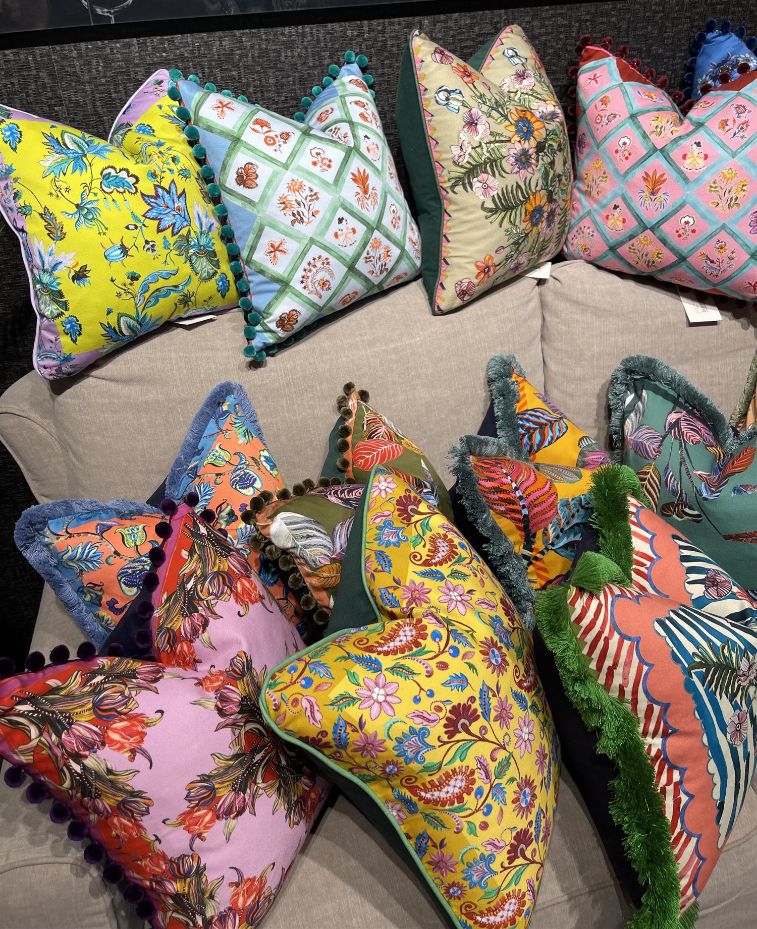 Puten har trykk på myk bomullssateng med bakside i bomullstwill, og er pyntet med sjarmerende dusker i kantene. Den strålende fargepaletten gir et friskt løft til en favorittstol, sofa eller seng.
