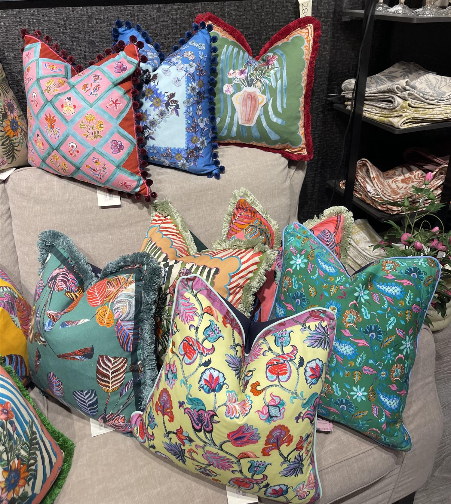 Forny sofaen og gi den et løft med den fantastiske puten Anna sage fra Eleni Malami! En leken kombinasjon av sterke farger og vakre botaniske mønstre gir et friskt og gledelig uttrykk.