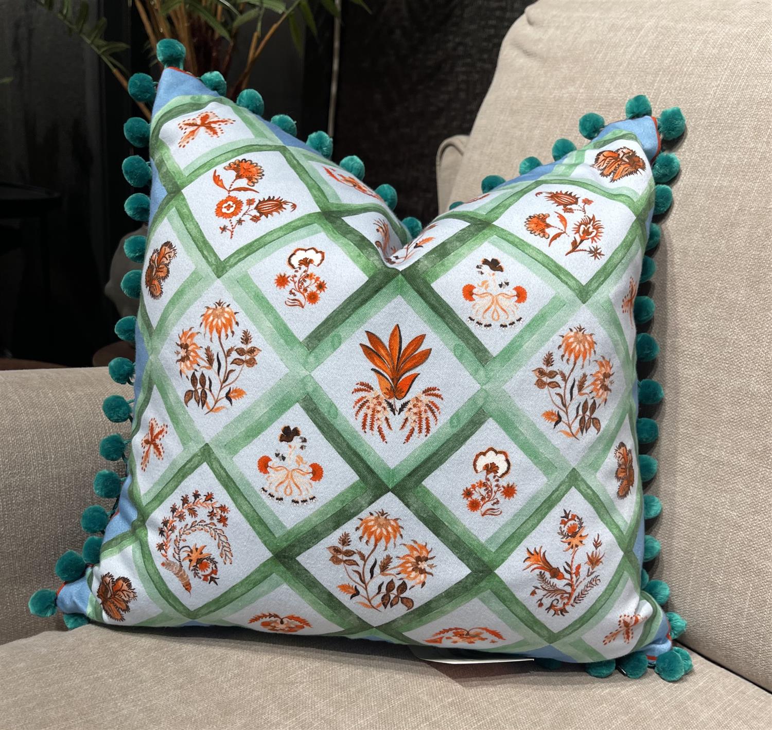 Puten er laget med bomullssateng på forsiden og bomull på baksiden med en festlig og dekorativ pom pom kant for det lille ekstra.