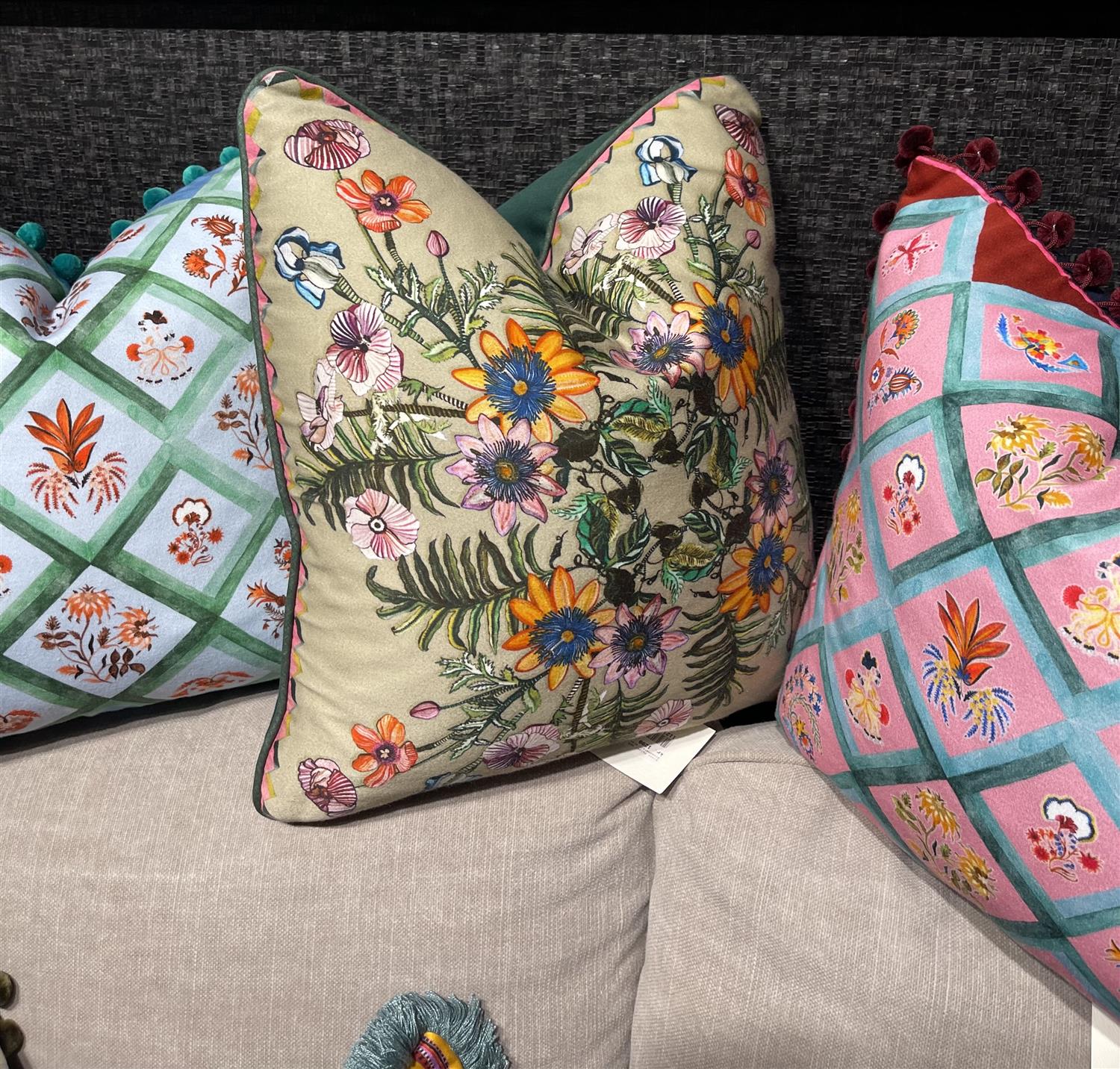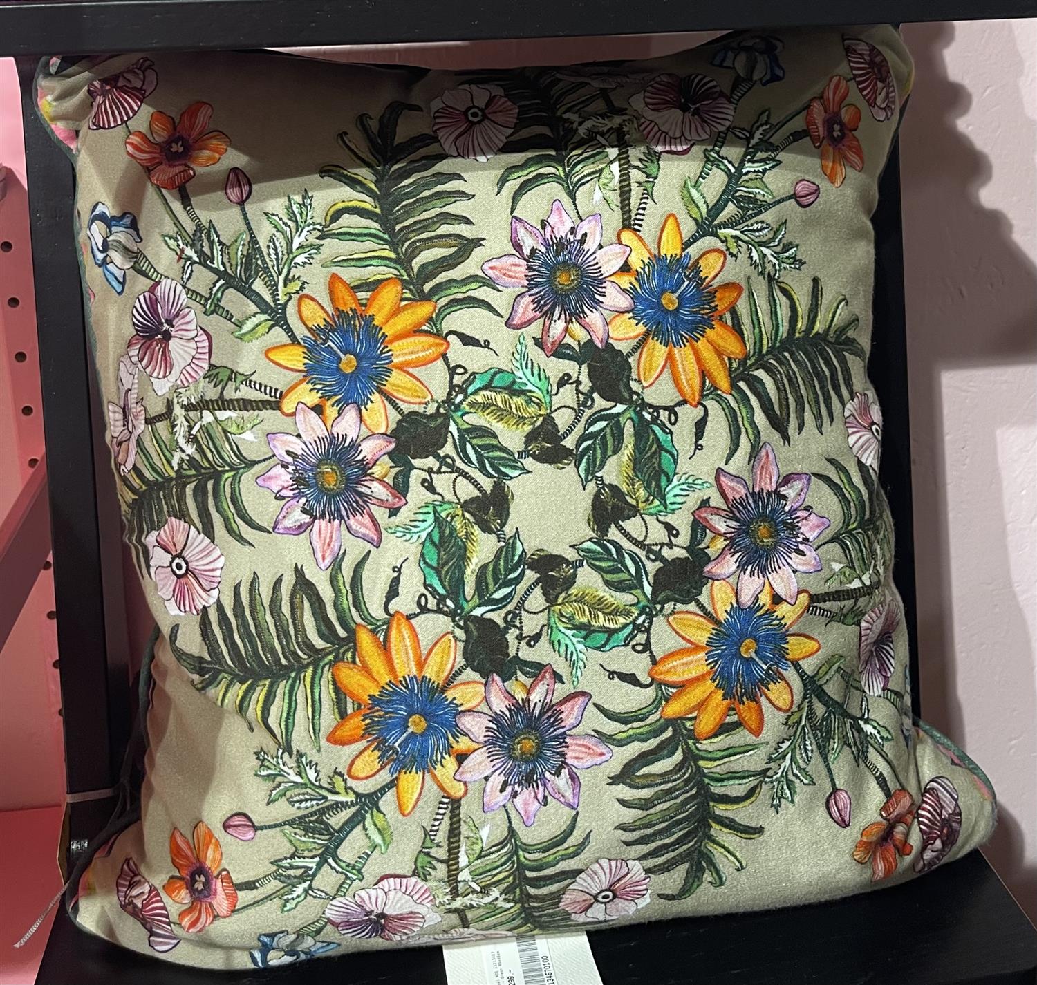 Designet er håndtegnet og digitaltrykt i Storbritannia, og puten er ferdigstilt med en elegant kant.