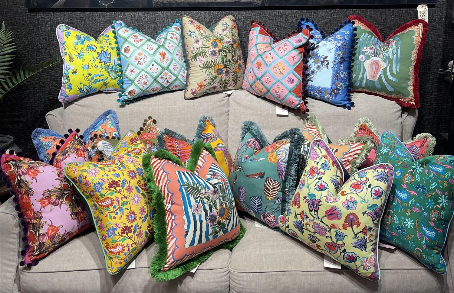 Designet er håndtegnet og digitaltrykt i Storbritannia, og puten er ferdigstilt med en elegant kant.