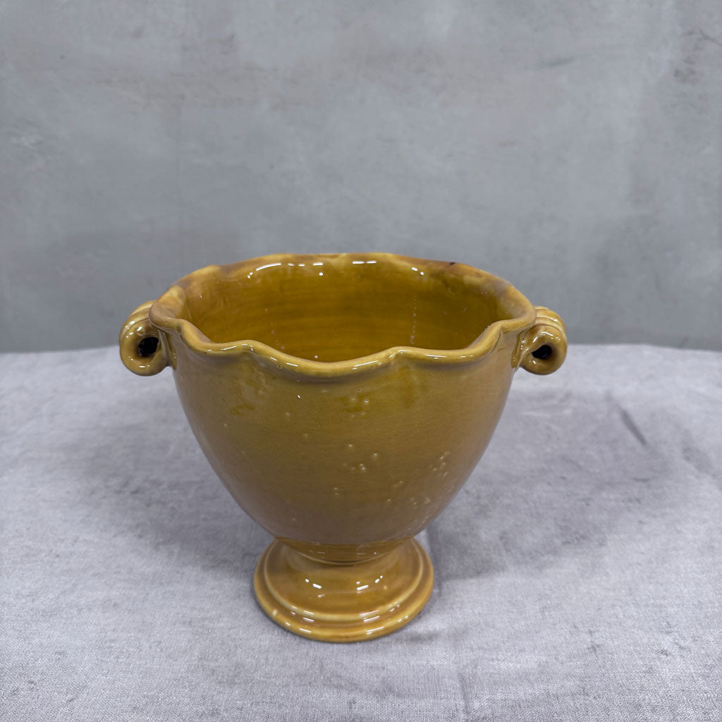 Den vakre potten/skålen Freja er i glasert oker farge. Den er håndlaget i keramikk og kommer fra svenske Frejas Boning.