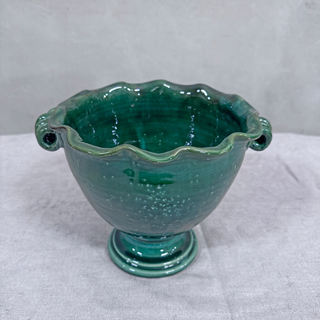 Den vakre potten/skålen Freja er i glasert oliven farge. Den er håndlaget i keramikk og kommer fra svenske Frejas Boning.