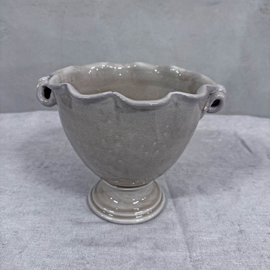 Den vakre potten/skålen Freja er i glasert sand farge. Den er håndlaget i keramikk og kommer fra svenske Frejas Boning.