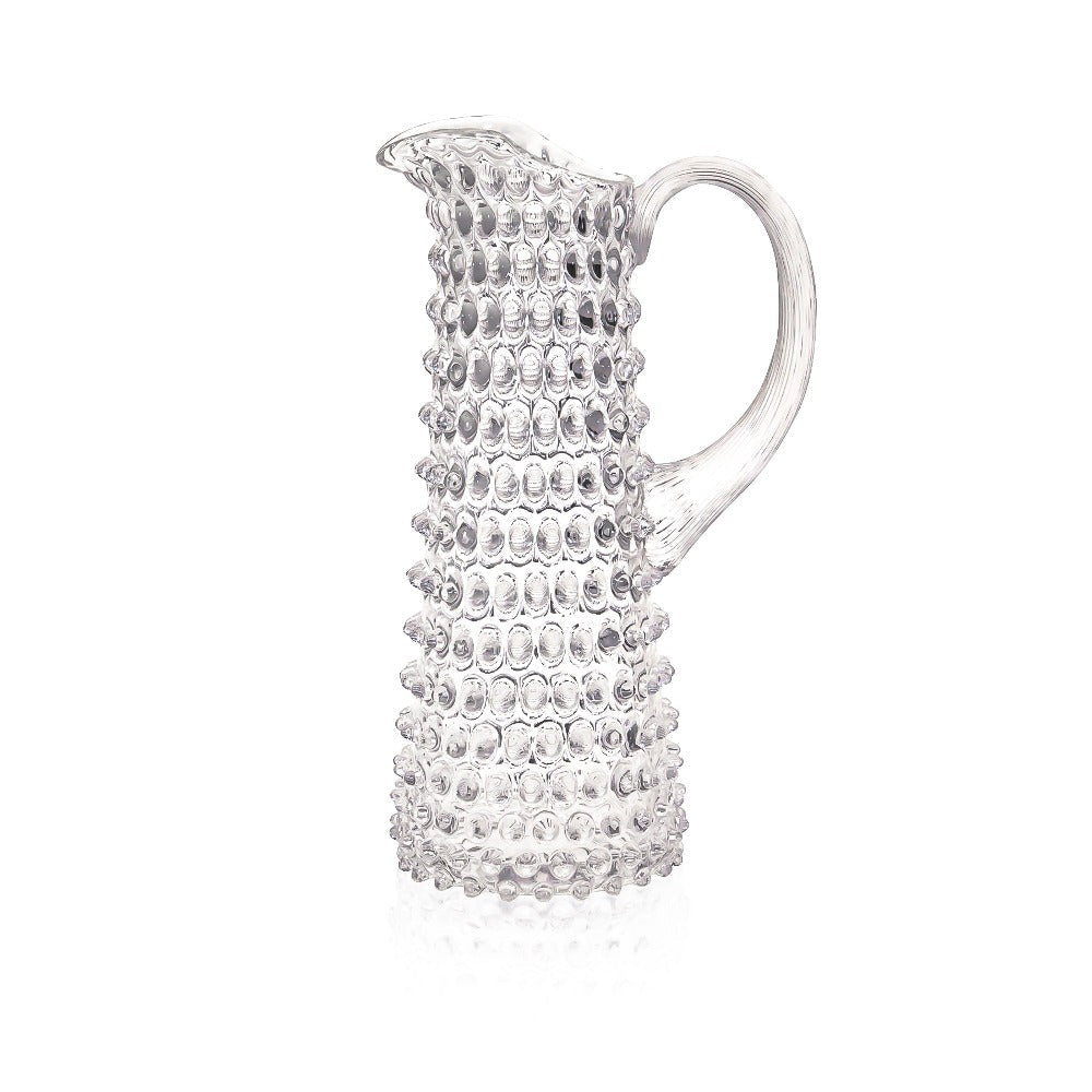 Et slankt og elegant design med bohemsk glasshåndverk. Denne krystall klare vannmuggen vil gi et snev av eleganse til ethvert spisebord eller hageselskap. Med sine håndlagde hobnail-detaljer er dette fantastiske muggen ideell for sommerdrinker eller som en vase for vinterblomster.