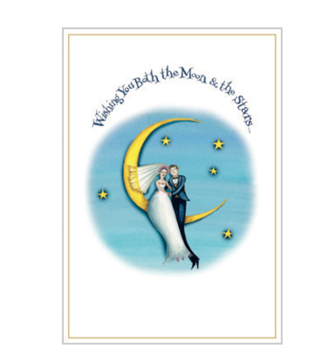 Kortet har teksten «Wishing you both the moon & the stars» på forsiden, og er dobbelt sidig med blankt på innsiden. Det medfølger konvolutt. Kortet er 12x17 cm.