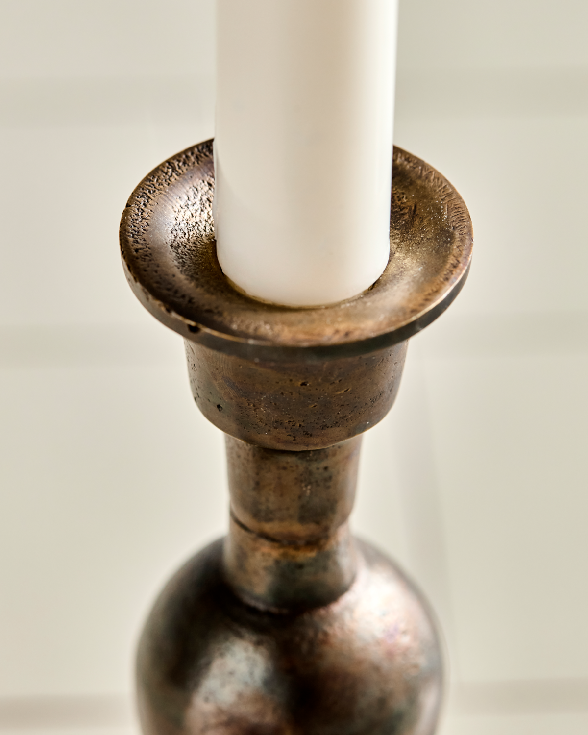 Den lekre lysestaken fra House Doctor lyser opp hjemmet ditt med et moderne og kunstnerisk preg. Den aldrede messingfinishen forbedrer ethvert rom med et skulpturelt og moderne design. Plassert på et bord, en hylle eller et brett, blir den et kunstverk som skaper en varm og raffinert atmosfære. Håndlaget av aluminium gir lysestaken et sofistikert og essensielt preg til innredningen din.