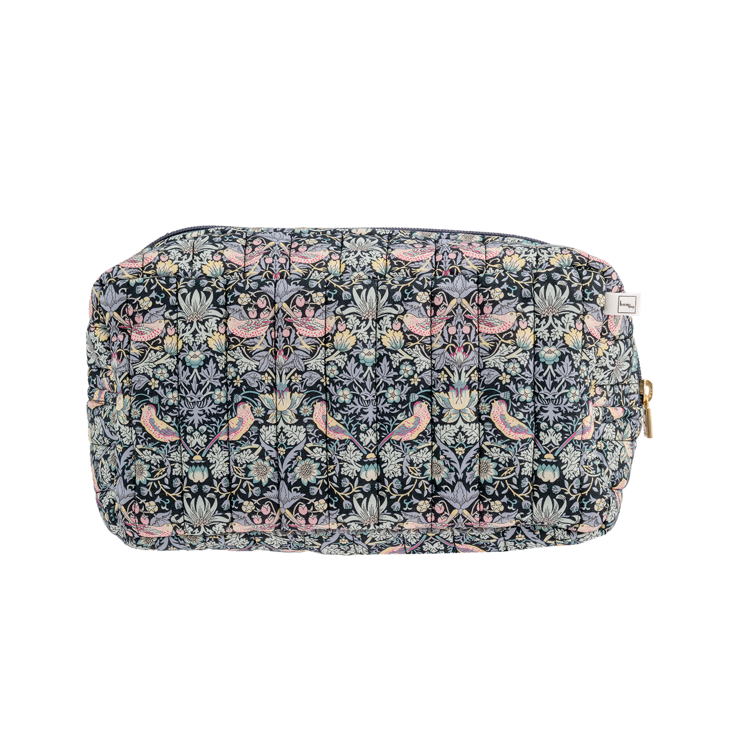 Lekker toalettmappe Pouch Square fra populære Bon Dep i Liberty Strawberry Thief Black er en lekker gave til deg selv eller noen du er glad i. Den lekre firkantede toalettmappen kombinerer praktisk oppbevaring med klassisk design i 100 % bomull med glidelås.