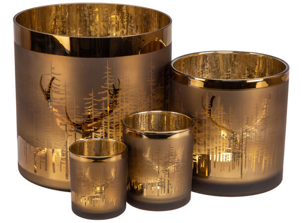 Flott lysglass i brun og gull med skogsdyr fra Børscompagniet.
