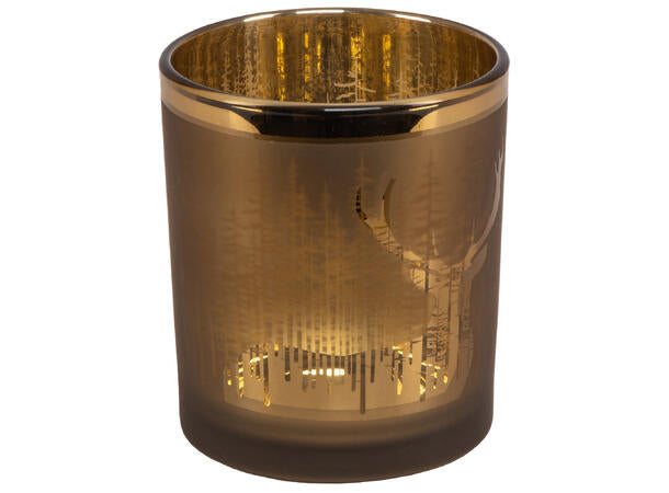 Flott lysglass i brun og gull med skogsdyr fra Børscompagniet.