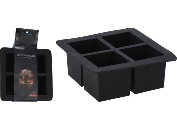 Praktisk brett i grå silikon for å lage 4 isbiter i form av kube fra Børscompagniet.
