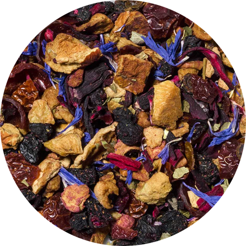 Ingredienser: eplebiter, blåbær, nypeskall, hibiskus, bjørnebærblader, solbærblader, aroma, kornblomstkronblader.