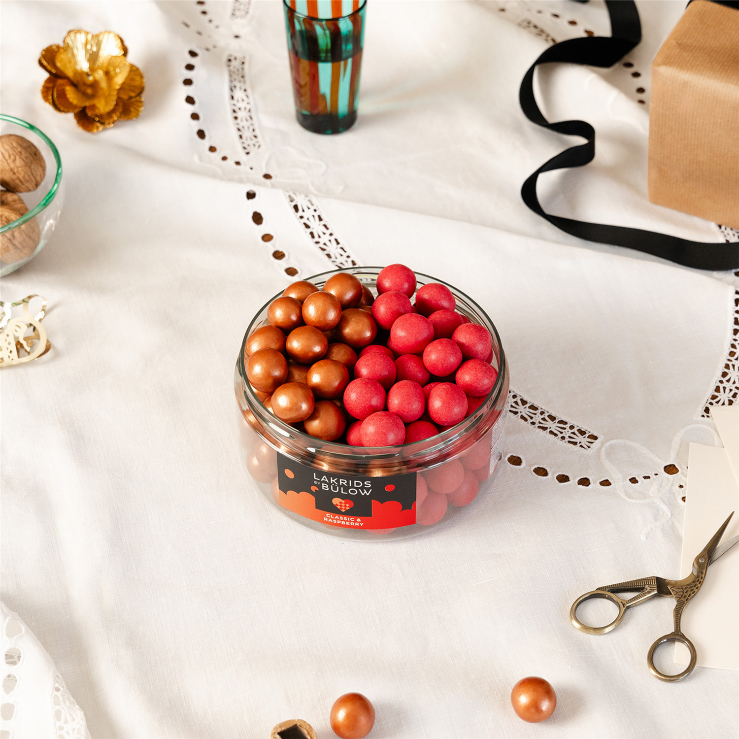 I midten venter en kjerne av søt lakris, omsluttet av silkemyk sjokolade og sprudlende fruktige noter. Små flak av bringebær gir ekstra friskhet, mens et delikat, rosa sukkerskall setter prikken over i-en. Resultatet er en perfekt balanse mellom søtt, friskt og luksuriøst. En smak som er like uimotståelig som den er vakker.