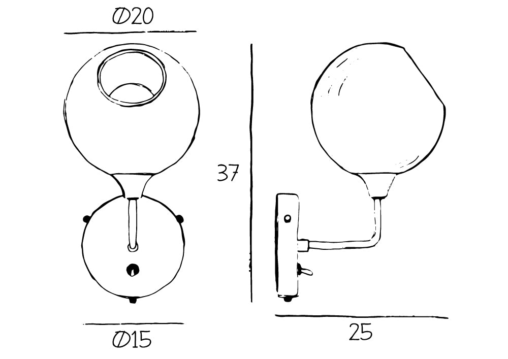 Lampen er beregnet for montering direkte på veggen med bryter elegant plassert på basen for enkel bruk. Den passer til en globepære (Ø80) med maks 40 watt og E27-sokkel, og med sine dimensjoner på H37 x Ø15 x D25 x Ø20 cm blir den en nydelig detalj i ethvert rom.