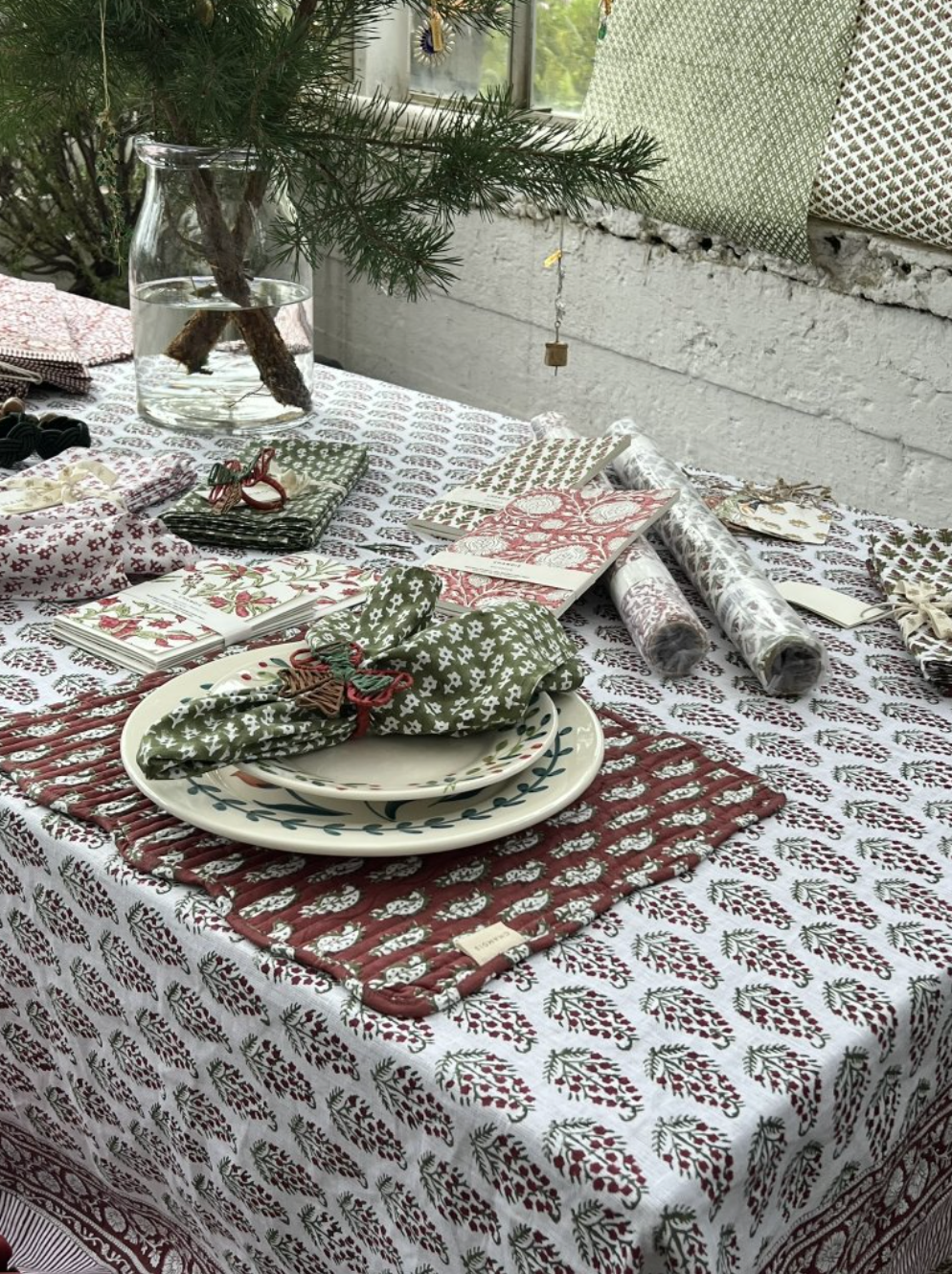 Forvandle spisestuen din med duken Perisian Paisley fra Chamois i rødt, grønt og hvitt. Inspirert av gamle orientalske tekstiler, er hver duk omhyggelig håndlaget med tradisjonelle indiske tresnittsteknikker. Utsøkt laget av førsteklasses økologisk bomull innbyr til bærekraftig luksus med tidløst design for en elegant presentasjon av spisestuen.