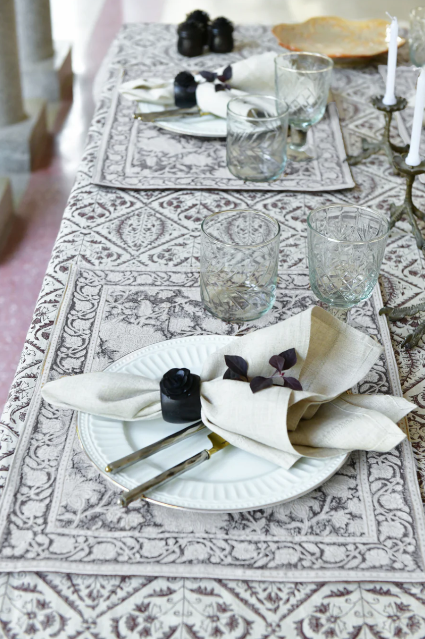 Oppdag lekre Jaipur fra Chamois som er inspirert av tekstiltradisjonene fra det gamle Orienten. Duken har Chamois sitt Jaipur-mønster i en myk brun tone, mesterlig trykt for hånd ved hjelp av den eldgamle metoden med indisk tresnitttrykk. Indian Rose-duken er laget av ubleket lin av høy kvalitet, og har et tungt fall og en vakker tekstur, samt en naturlig dybde i fargen og trykket.Resultatet er et tekstil som oser av håndverk og tidløs eleganse.