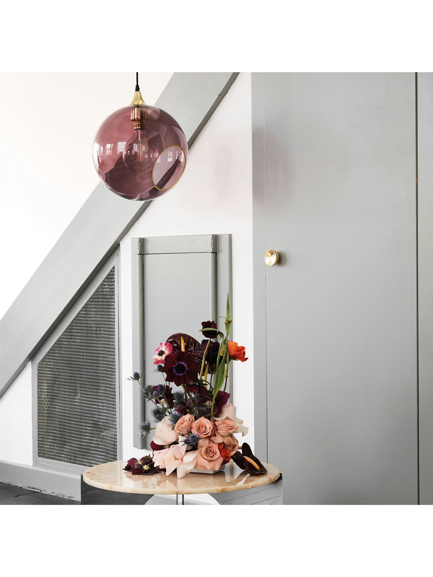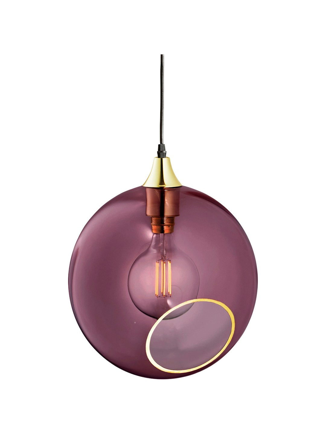 Taklampen Ballroom XL i Purple Rain fra Design By Us er enkel og utmerket. Den klassiske formen kombinert med det gullbelagte opphenget gjør denne lampen tidløs. Glasskuppelen er munnblåst og håndmalt. Kanten på det fasetterte hullet er gull. Ballroom XL i Purple Rain har en gullkant og gullfatning.