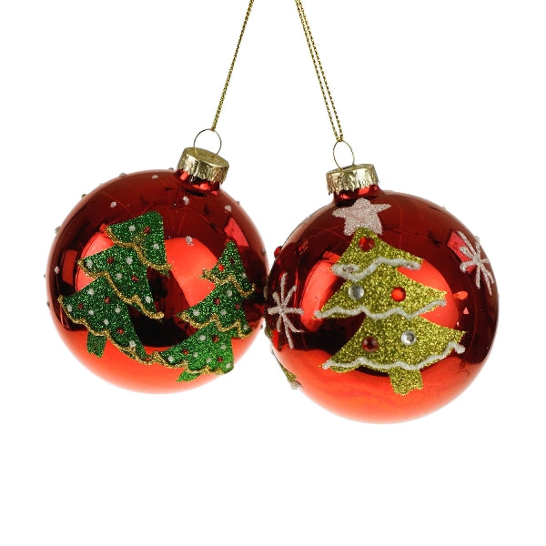 Vakker og nostalgisk julekule i med grønt juletre i rødt glass fra Werns.