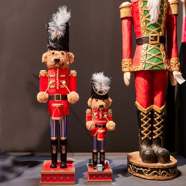 Vakker og nostalgisk teddybjørn som nøtteknekker med trommer i rød og brun fra Werner Voss. Et delikat tilskudd til din juledekor på hele 38 cm.