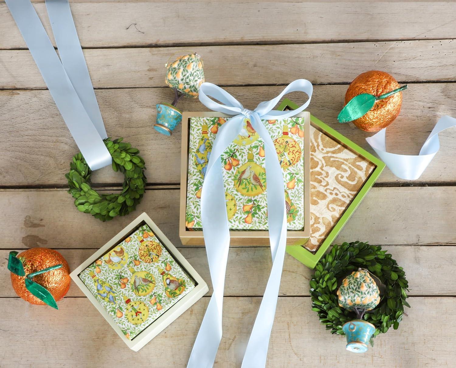 Elegant serviettholder Acrylic luncheon Napkin holder fra Caspari. Serviettholderen er til lunsj servietter og er i gull lakk som er håndlaget i Vietnam. Den er laget av lakkhåndverkere som fullfører hvert trinn, skjærer og sliper treverket og påfører gullblad for hånd. Til slutt påføres de en blank lakk i mange lag som gir holderen en holdbar finish. Det perfekte tilbehøret til bordet ditt.