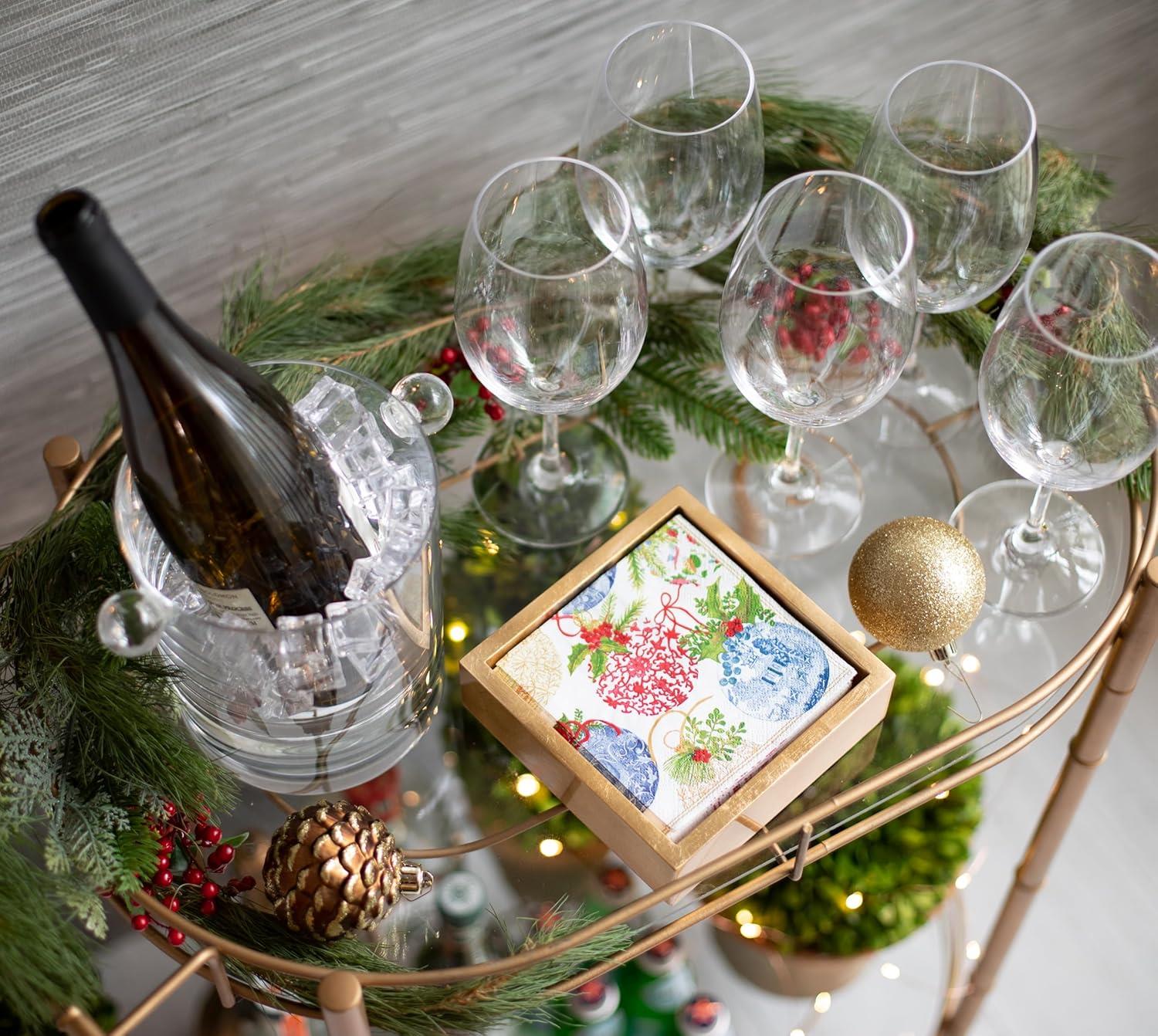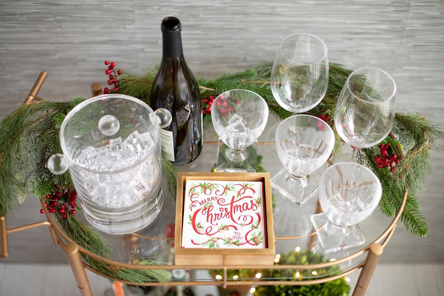 Elegant serviettholder Acrylic cocktail Napkin holder fra Caspari. Serviettholderen er til kaffe servietter og er i gull lakk. Den er håndlaget i Vietnam av lakk håndverkere som fullfører hvert trinn, skjærer og sliper treverket og påfører gullblad for hånd. Til slutt påfører de en blank lakk i mange lag som gir holderen en holdbar finish. Det perfekte tilbehøret til bordet ditt.