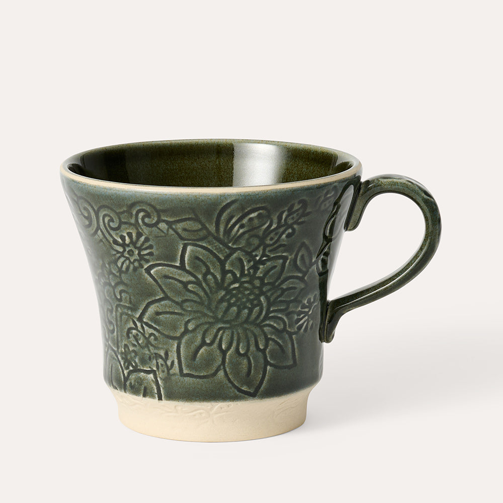 Den vakre kruset Tea Mug i den nye fargen Shadow i Sthål vakre serie Arabesque er 9 cm høyt og rommer 35 cl. Den nye fargen Shadow er en mørk mosegrønn farge som er litt grå og som er lekker i kombinasjon med andre farger fra Sthål.