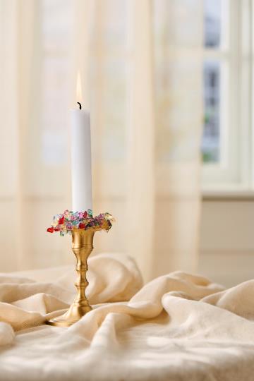 Lekker lysmansjett fra Ib Laursen til kronelys med fargede perler. Lysmansjetten er håndlaget og de forskjellige fargene vil gi borddekkingen eller hjemmet ditt et magisk preg. Den kan også brukes som serviettring!