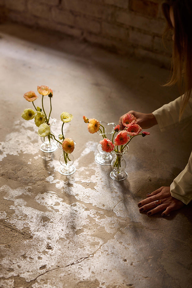 Denne vakre bunten med valmuer fra Mr Plant i fersken på 22 cm gir en nydelig stemning i vaser og krukker.