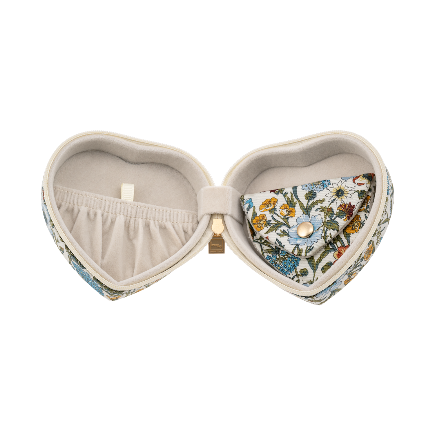Lekkert smykkeskrin Jewellery Box Heart fra populære Bon Dep i Liberty Rachel er en lekker gave til deg selv eller noen du er glad i. Det fine smykkeskrinet kombinerer praktisk oppbevaring med nostalgisk design med et nydelig blomstrende utrykk i 100 % bomull med glidelås og innhold som kan tas ut.