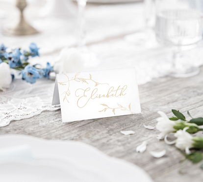 De vakre bordkortene Branches fra Vinding er hvit med gull grener og er perfekte for tilføre en elegant touch til din fest. Hvert kort måler 9,5x5,5 cm og er i pakke med 10 stk.