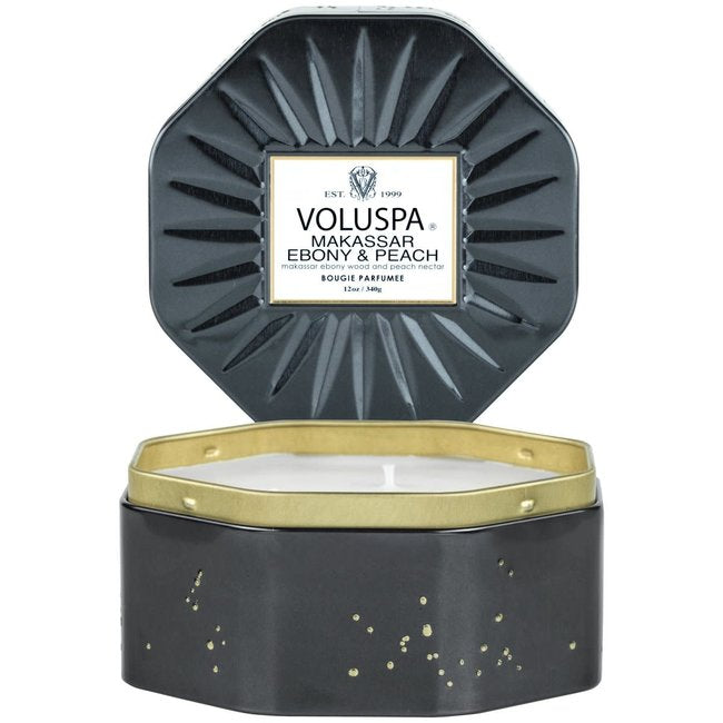 Makassar Ebony & Peach Octagon Tin Candle 40 Timer
