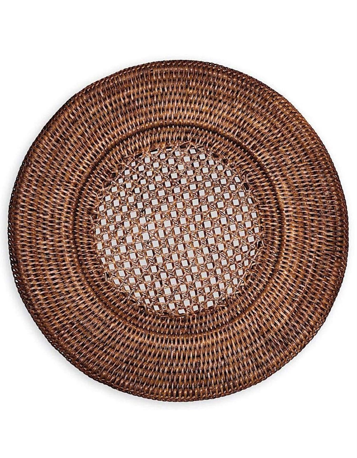 Elegant rund dekketallerken i mørk rattan fra Caspari. Den er håndlaget i solid og varig rattan som er vevd og lakkert i Myanmar.