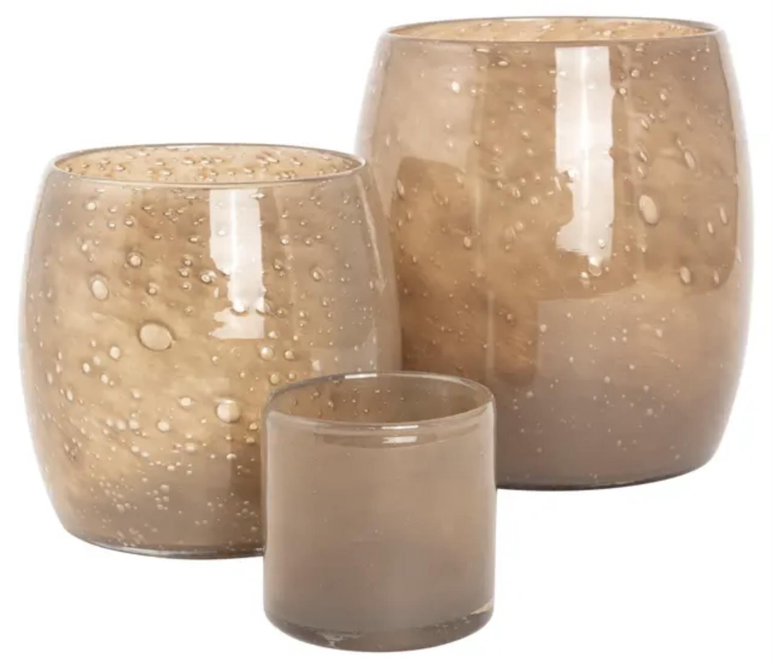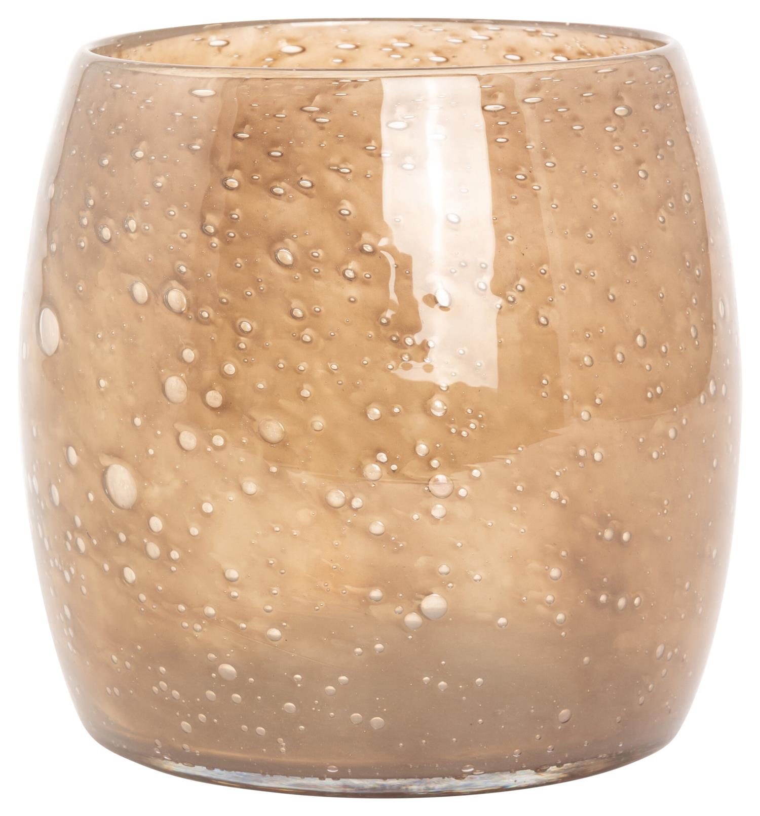 Flott lyslykt i en delikat nøttebrunt glass fra Lama. Det unike fargespillet i glasset oppstår når fargepigmentet tilføres og glasset formes til sin endelige fasong. Hvert produkt vil derfor ha sitt eget individuelle uttrykk. Den uregelmessige pigmenteringen gjør samtidig at lykten kaster et lunt og vakkert lys i rommet.