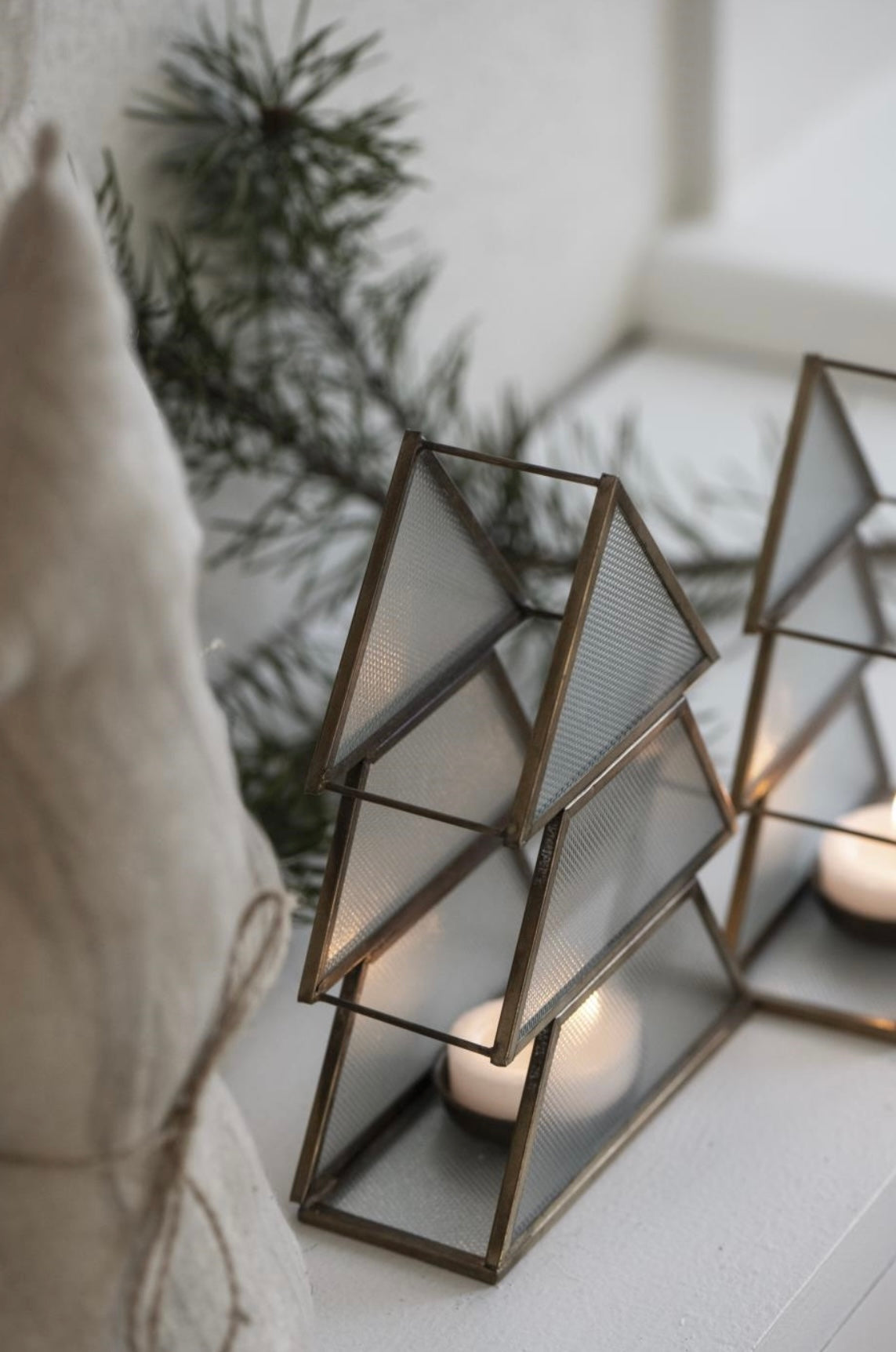 Vakker telysholder formet som et juletre fra Ib Laursen i glass med metallkanter.