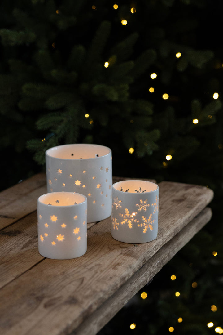 Med sitt tynne porselen og nydelige mønster som slipper lyset ut, vil denne vakre telysholderen bli en ny julefavoritt.